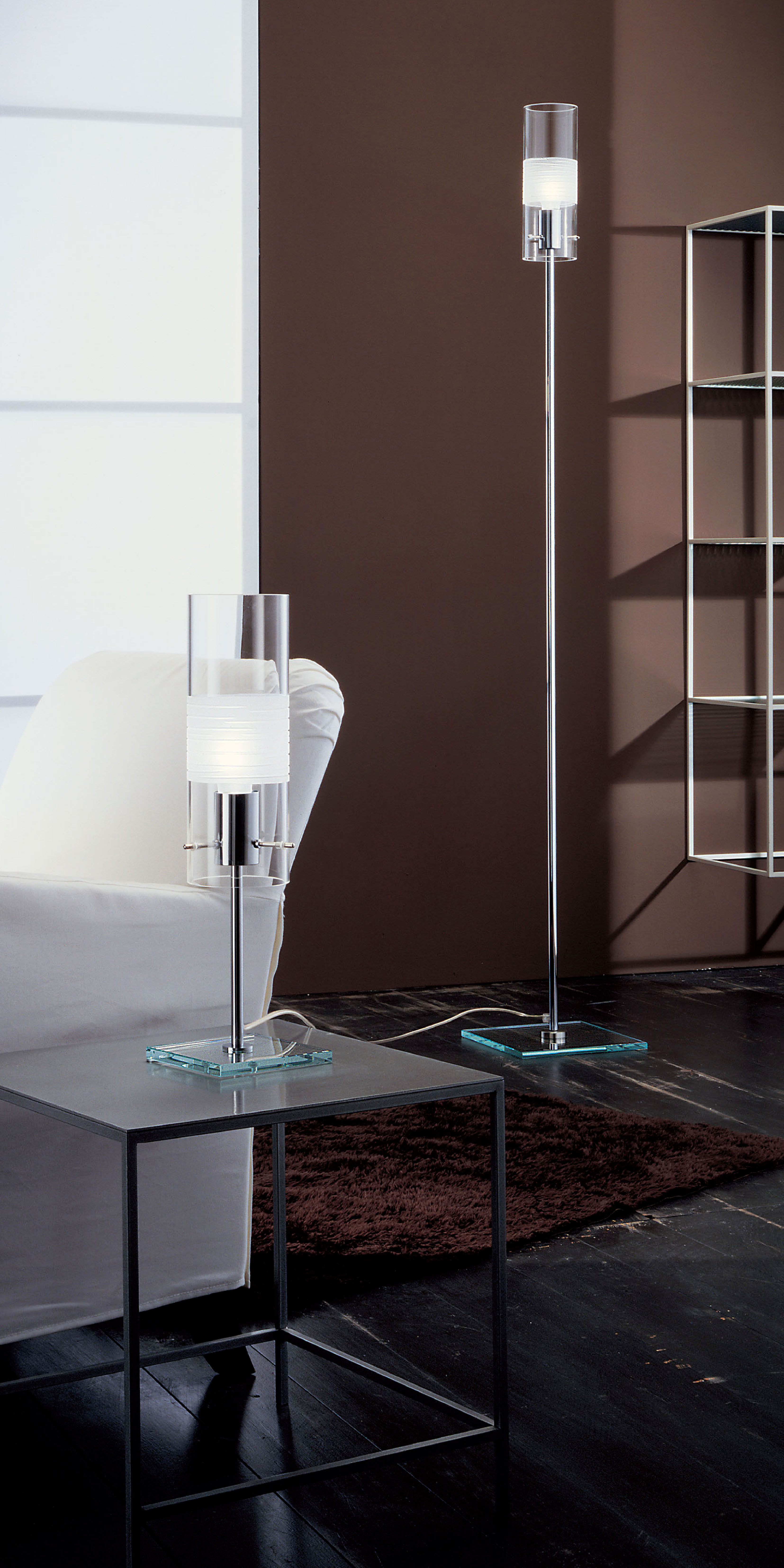 каркас хромированный, абажур доступен в следующих цветах: атласно-белый, прозрачный, глазурный с прозрачными краями