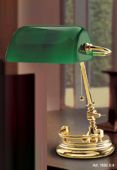 Классическая настольная лампа с зеленым стеклом. Мода на зеленую лампу пошла еще с «лампы Ильича». Сейчас же – зеленый цвет стекла – снова актуален в любом интерьере кабинета. Предлагаем вам, как пример, настольную лампу от итальянского производителя Moretti Luce.